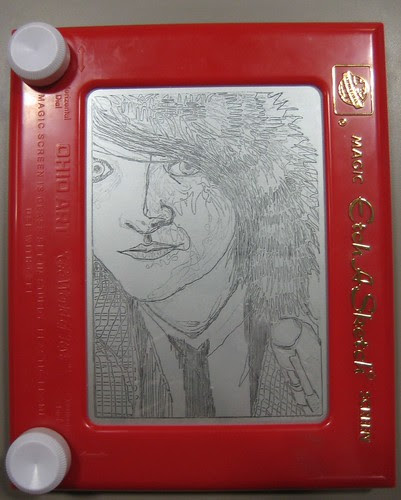 Normally it takes me anywhere from 6 months to Never to get a free portait done. But these cute girls keep sending me pictures and there's not a lot of awesome things in the news to draw. Aimee sent in this challenging shot. The portait aspect ratio is always a toughy. Add a wacky a fur hat and a tweed jacket and you've got a whole textural smörgåsbord going on. I'm not sure what the laser gun-y thing is she's rockin'. Don't Tase me, Aimee.